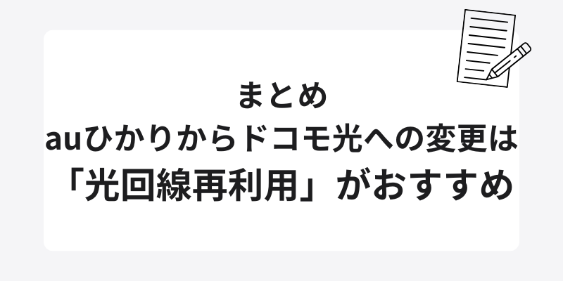 まとめ:auひかりからドコモ光への変更は「光回線再利用」がおすすめ